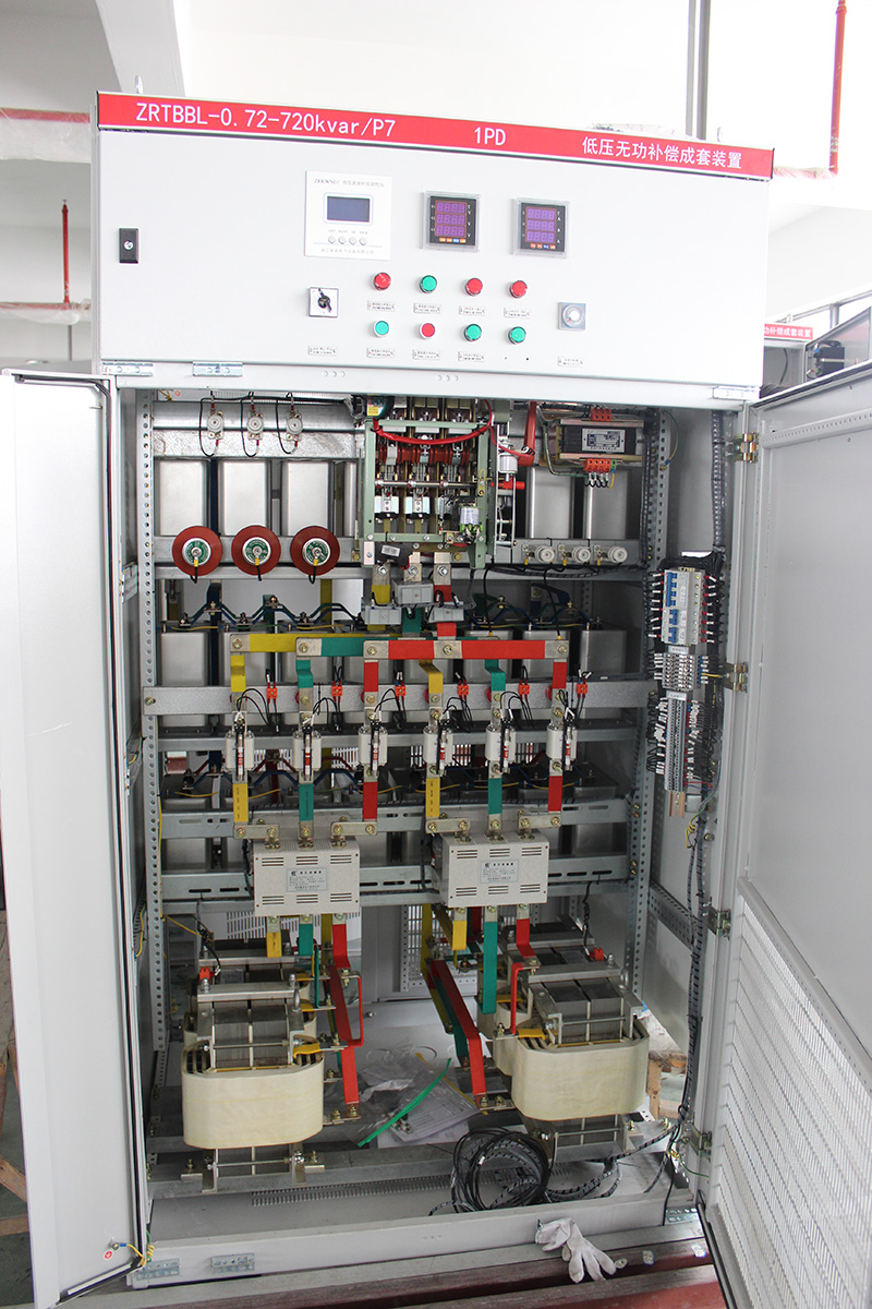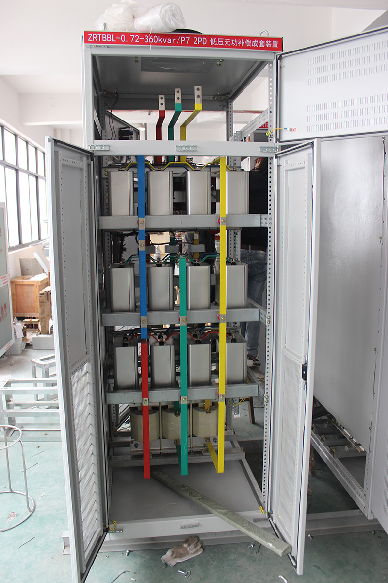 我公司研制生产的高低压无功补偿谐波滤除装置。适用于冶金,化工,纺织,通讯机房设备等的环境。该装置采用了动态过零投切元件,电感和电容器组成串联谐振吸收回路,有效的将负载产生的谐波加以吸收,从而避免将谐波电流返送到电力变压器,大大降低电网的谐波量,同时有利于用户电力变压器的运行,降低功耗,提高设备和其它电器组件的可靠性。此外该设备还提供一定容量的无功功率补偿,提高用户负载的运行效率。系统的操作可分自动运行和手动操作。