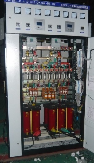 浙江能容电力设备有限公司研制生产的低压谐波滤除装置是专用于低压电网3次、5次、7次、11次、13次及以上的谐波无源滤波装置。适用于中频冶炼、变频、轧钢、整流设备等的环境。该装置采用了电感和电容器组成串联谐振吸收回路,有效的将负载产生的谐波加以吸收,从而避免将谐波电流返送到电力变压器,大大降低电网的谐波量,同时有利于用户电力变压器的运行,降低功耗,提高设备和其它电器组件的可靠性。此外该设备还提供一定容量的无功功率补偿,提高用户负载的运行效率。该装置分综合控制柜和电抗柜,视用户要求不同,配置的滤除谐波次数也不同。通常一套ZRTBBL系统可滤除4种谐波。系统的操作可分自动运行和手动操作。