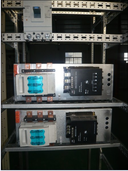 抽屉式模块上已安装有所需容量的电容器(和电抗器)、接触器、可控硅动补开关、控制端子排、垂直母线、母线架、母线熔断器式隔离开关。整块板自成系统,通过进线口、控制器接口和电流互感器接口与周围系统连接。