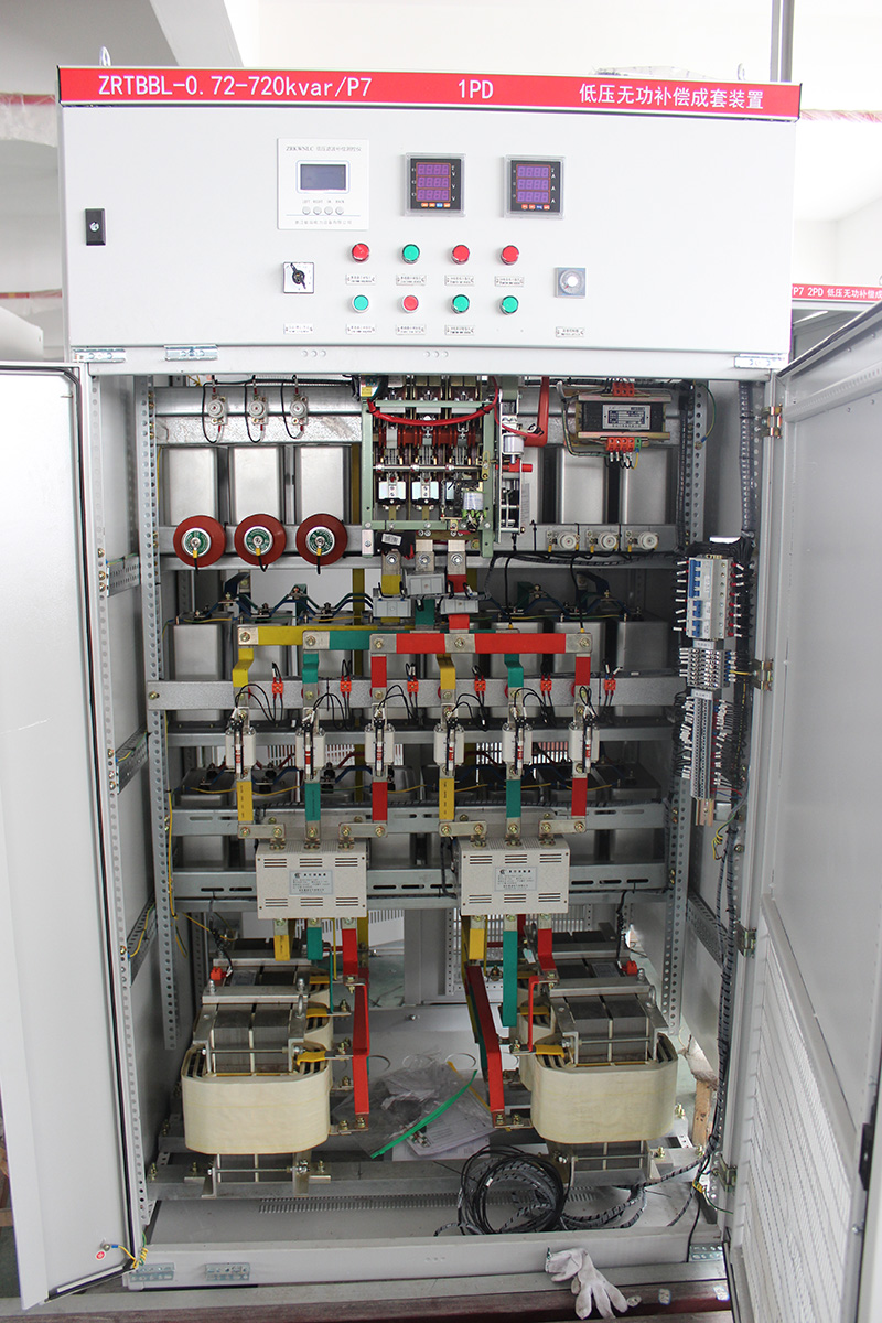 我公司研制生产的高低压无功补偿谐波滤除装置。适用于冶金,化工,纺织,通讯机房设备等的环境。该装置采用了动态过零投切元件,电感和电容器组成串联谐振吸收回路,有效的将负载产生的谐波加以吸收,从而避免将谐波电流返送到电力变压器,大大降低电网的谐波量,同时有利于用户电力变压器的运行,降低功耗,提高设备和其它电器组件的可靠性。此外该设备还提供一定容量的无功功率补偿,提高用户负载的运行效率。系统的操作可分自动运行和手动操作。
